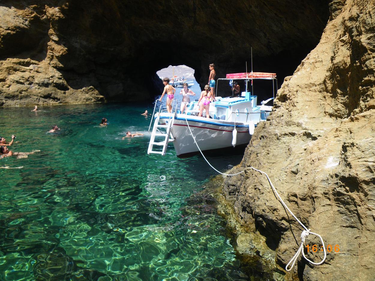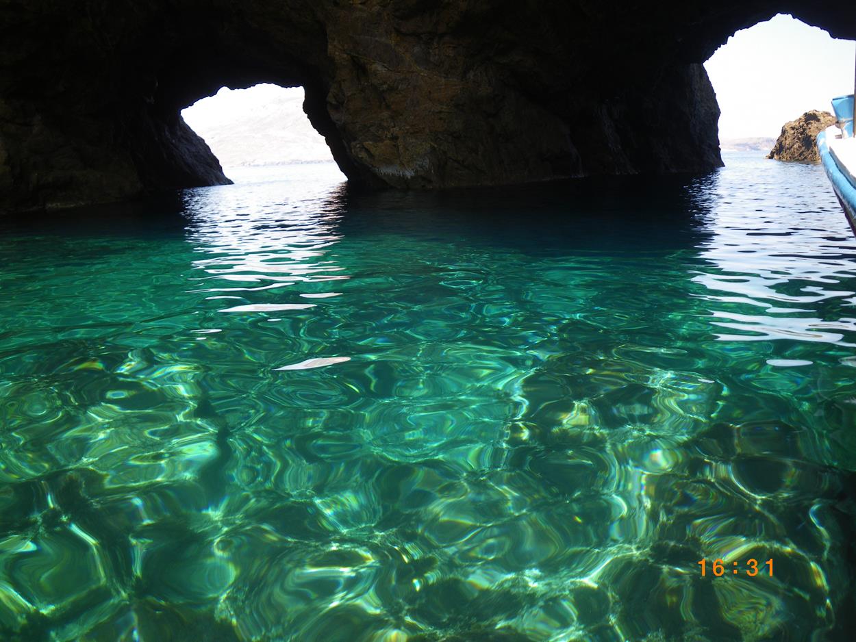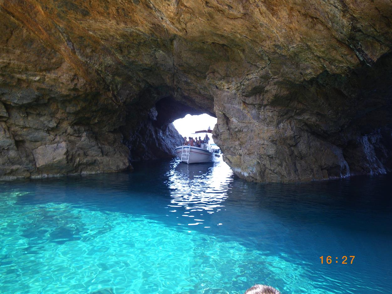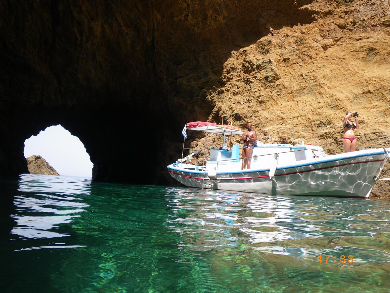 Cruise to Dragonissi or Tragonisi island. The sea caves of Tragonisi island