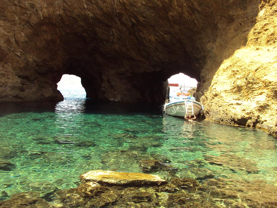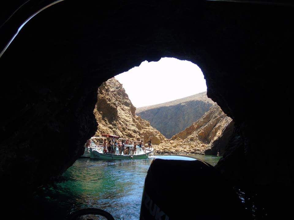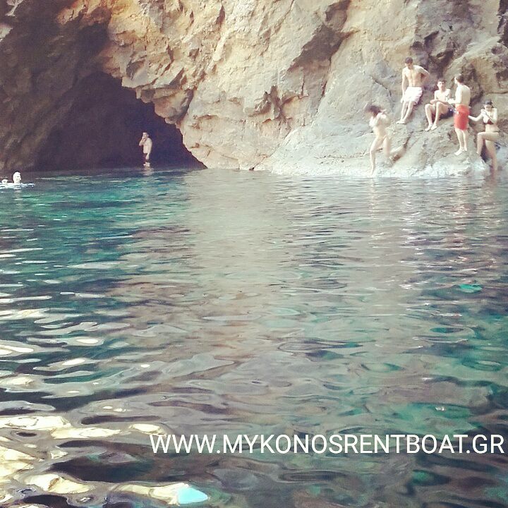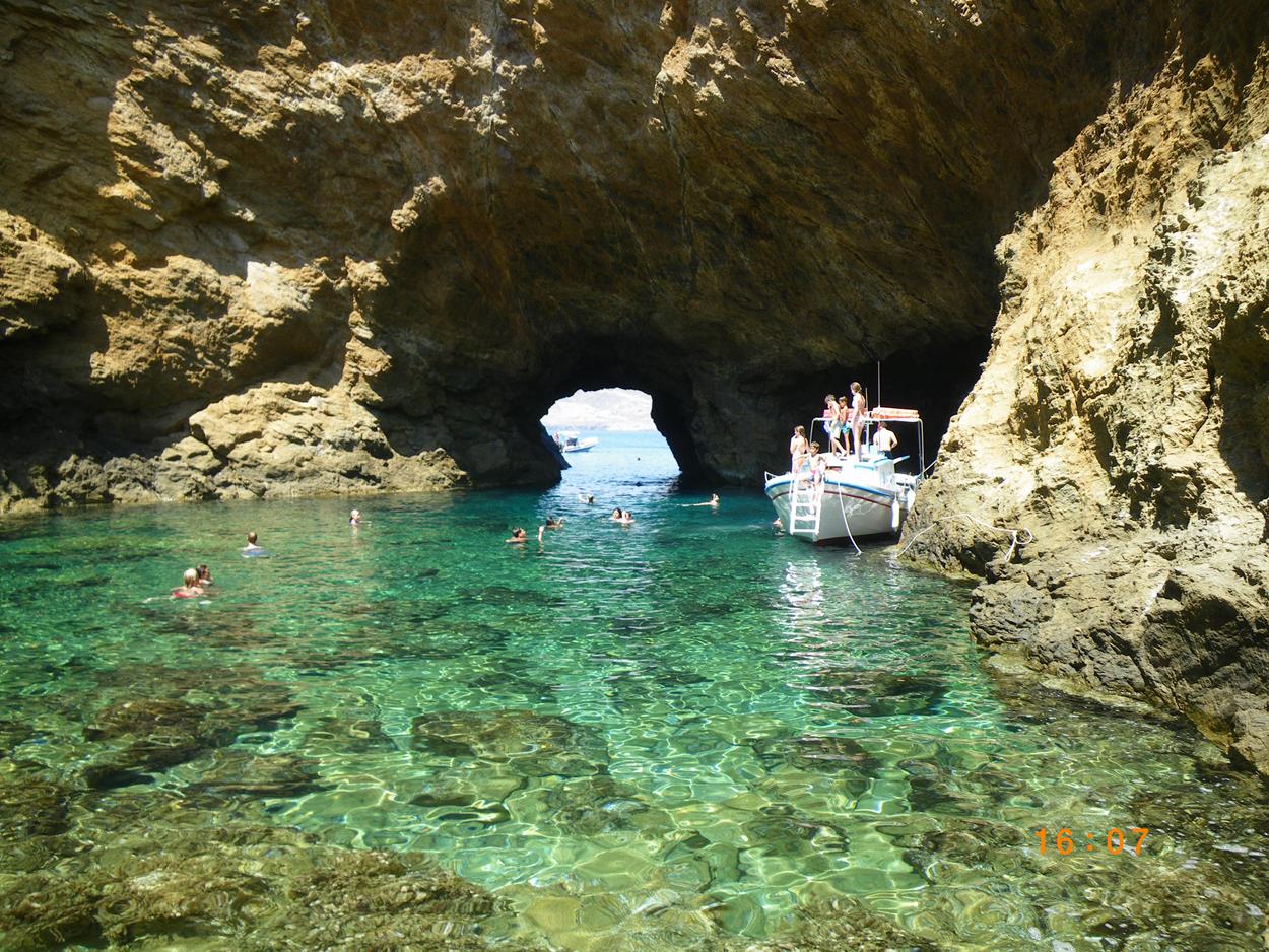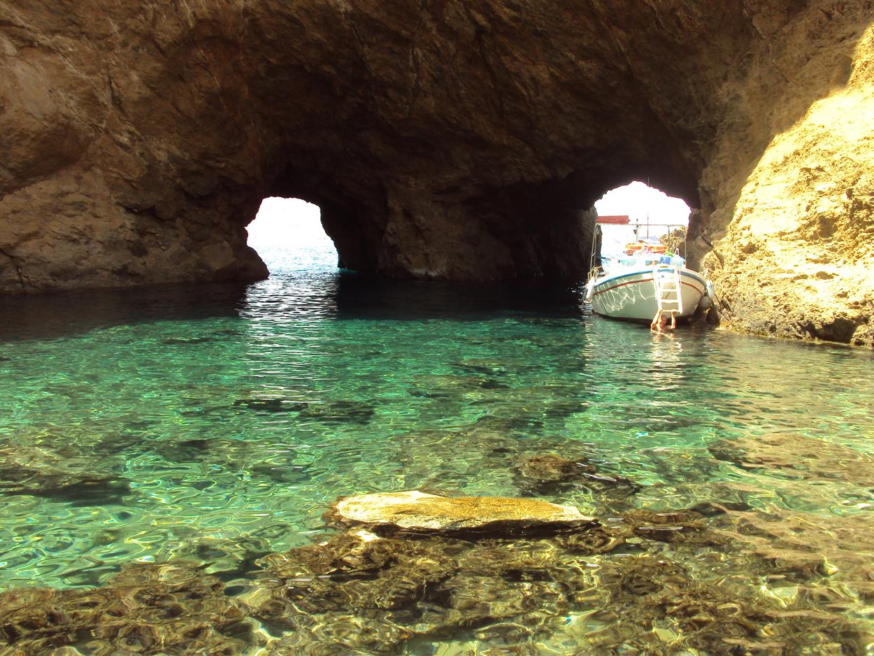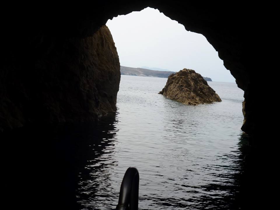 Cruise to Dragonissi or Tragonisi island. The sea caves of Tragonisi island