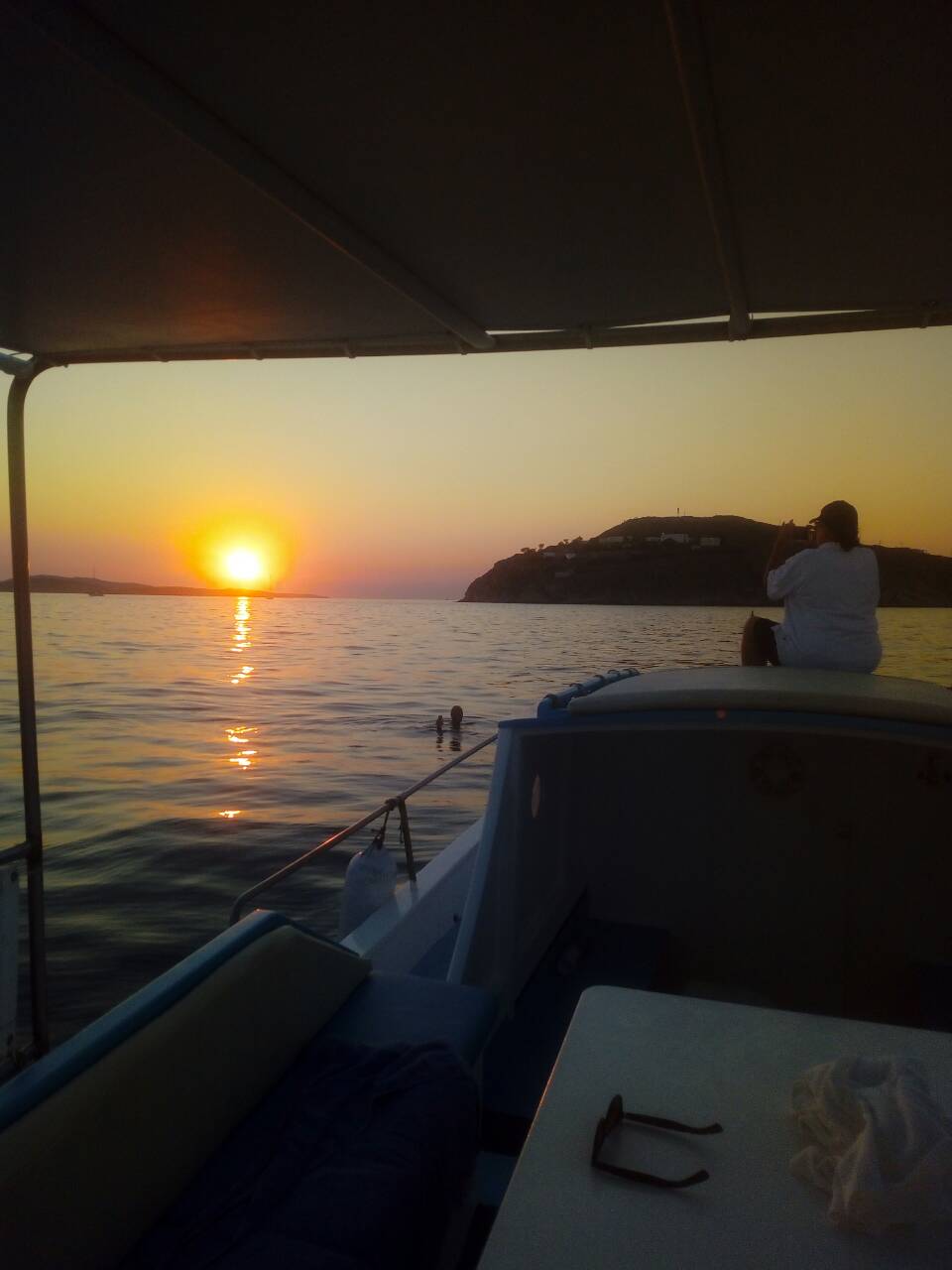 Romantic boat trip during sunset